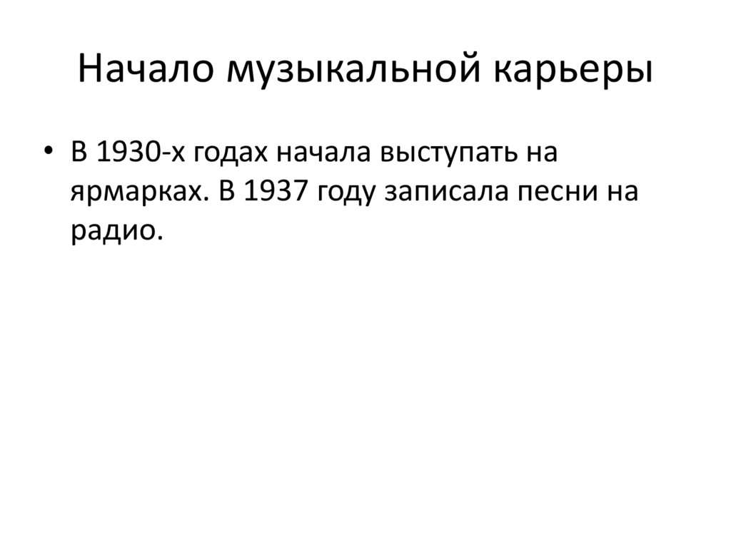 Начало музыкальной карьеры• В 1930-х годах начала выступать на