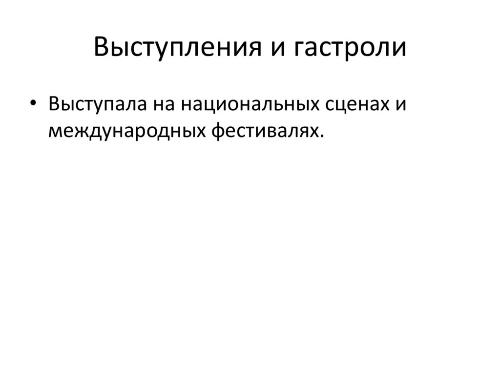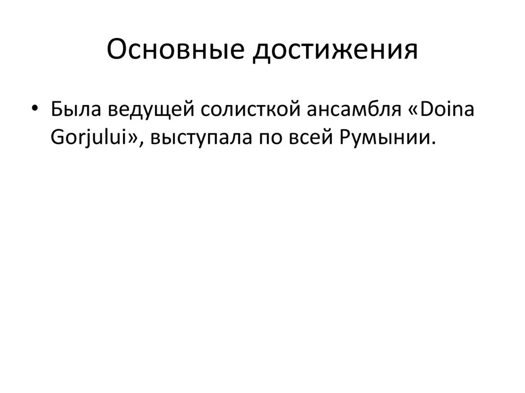 Основные достижения• Была ведущей солисткой ансамбля «Doina