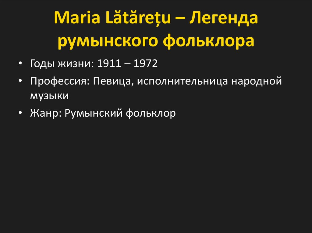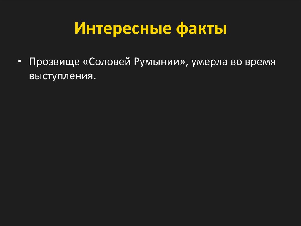 Интересные факты• Прозвище «Соловей Румынии», умерла во время