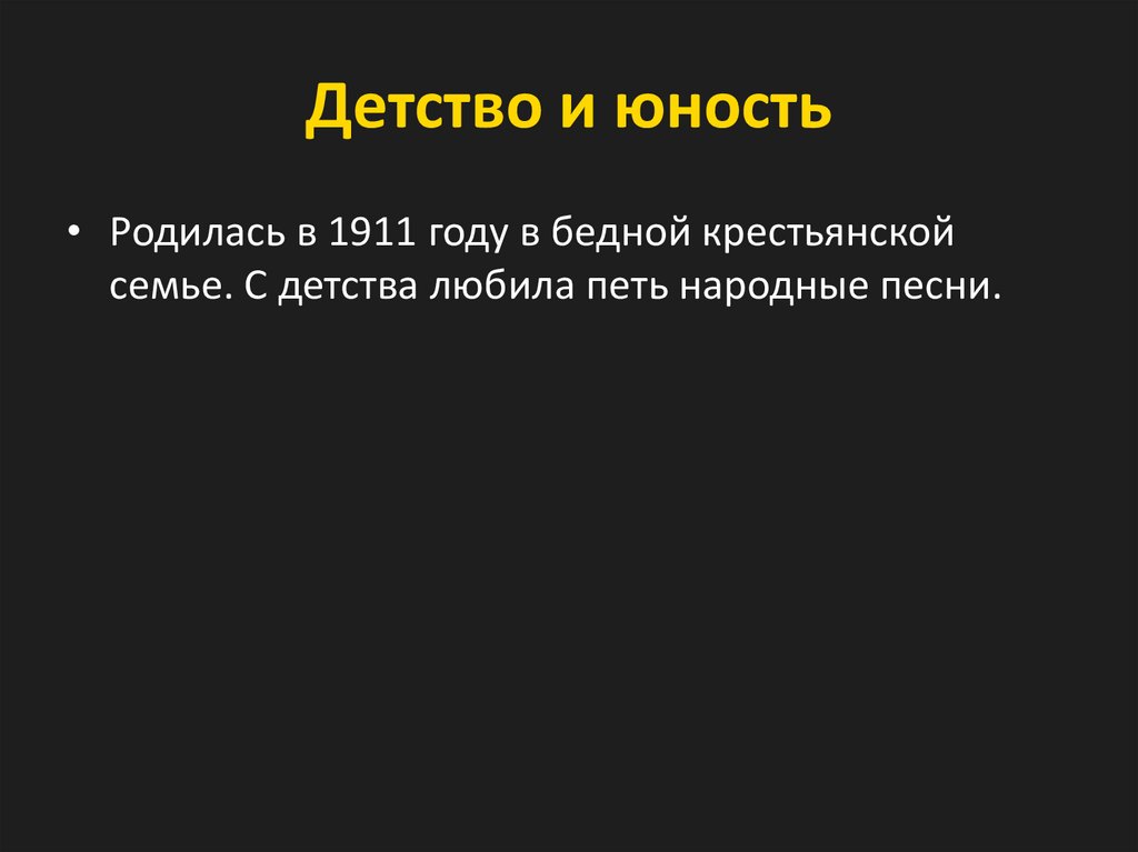 Детство и юность• Родилась в 1911 году в бедной крестьянской