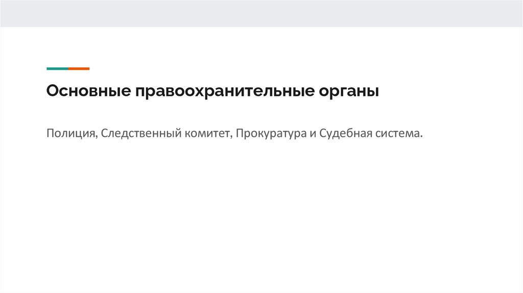 Основные правоохранительные органыПолиция, Следственный комитет, Прокуратура и Судебная система.