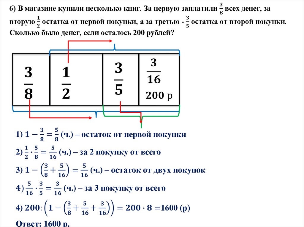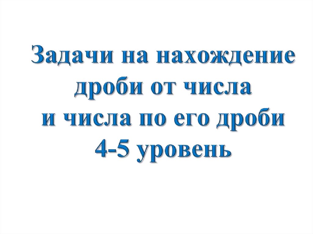 Задачи на нахождение дроби от числа и числа по его дроби 4-5 уровень