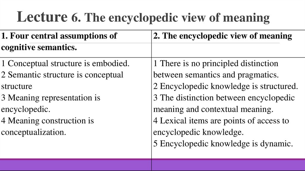 1. Lecture 6. The encyclopedic view of meaning