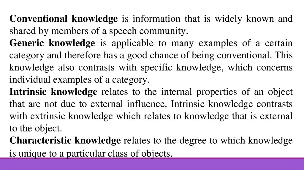 Conventional knowledge is information that is widely known andshared by members of a speech community.