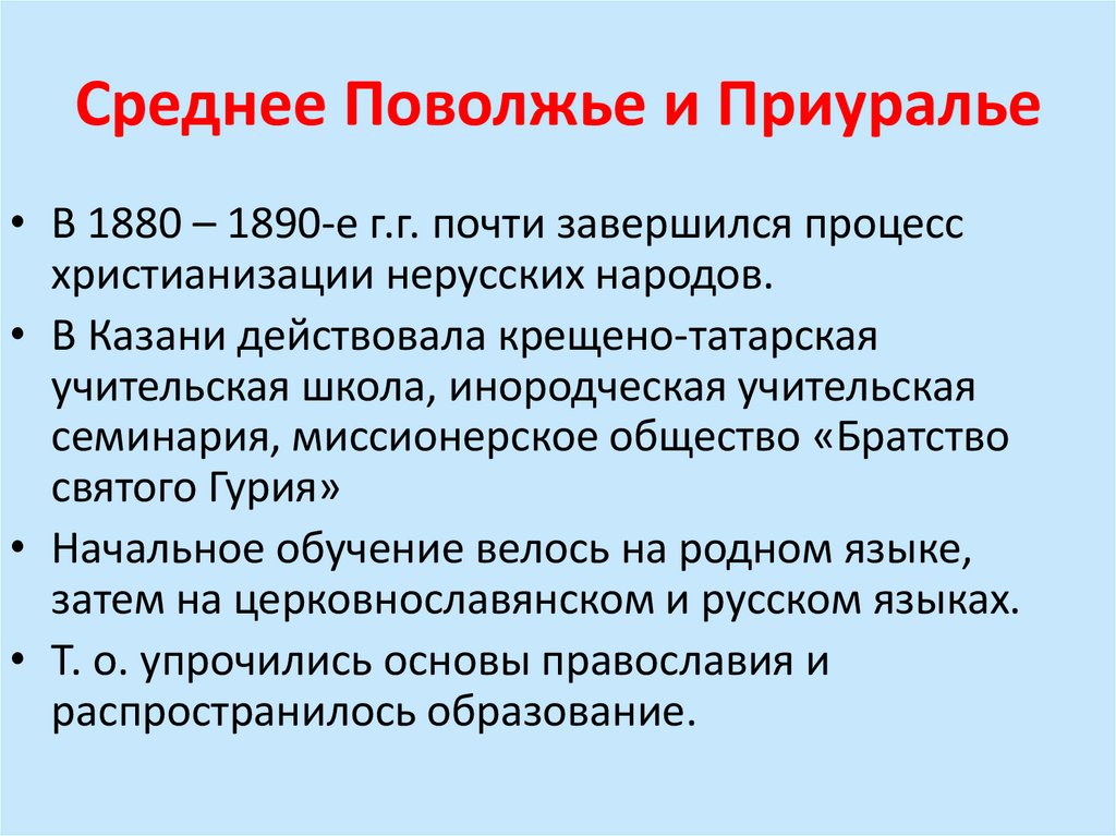 • В 1880 – 1890-е г.г. почти завершился процессхристианизации нерусских народов.