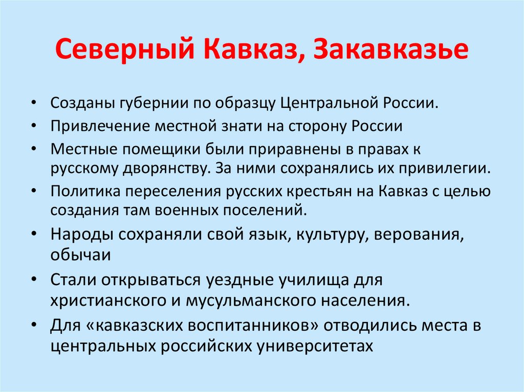 • Созданы губернии по образцу Центральной России.• Привлечение местной знати на сторону России