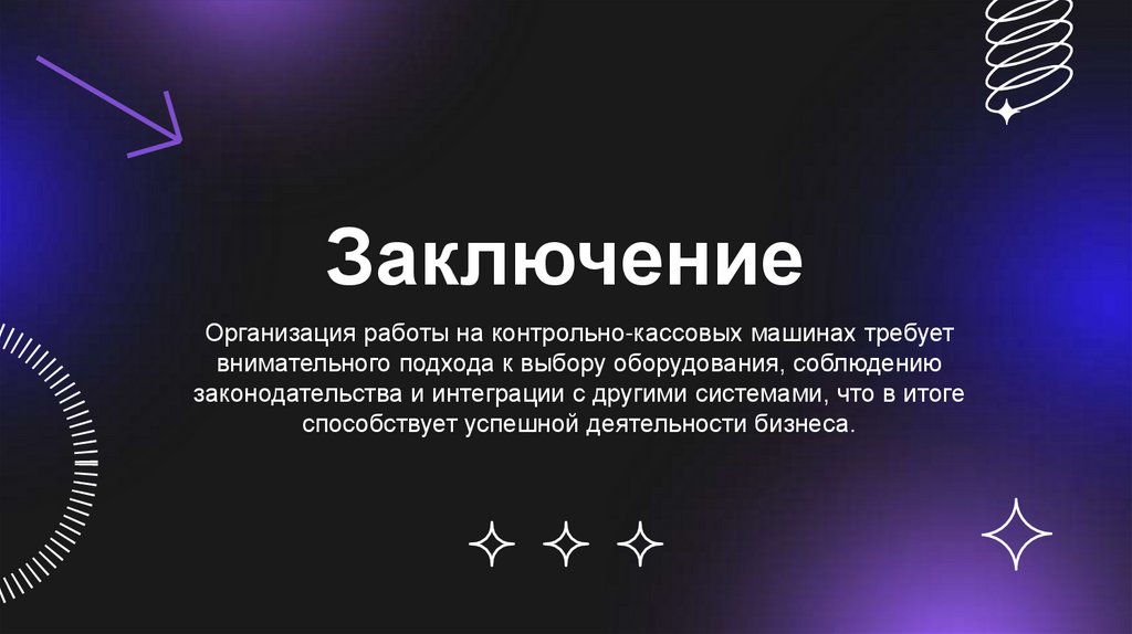 ЗаключениеОрганизация работы на контрольно-кассовых машинах требует