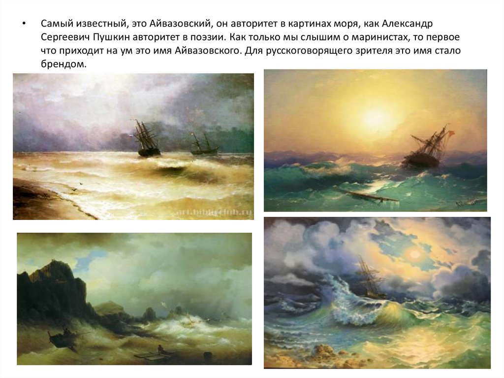 Самый известный, это Айвазовский, он авторитет в картинах моря, как Александр