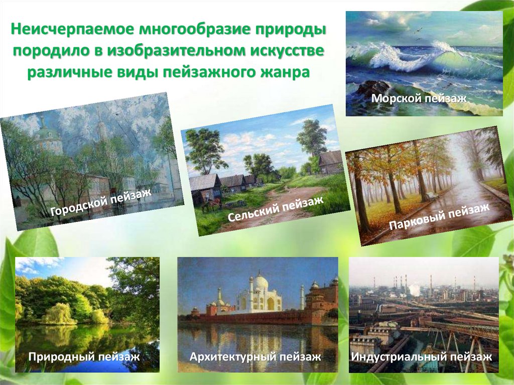 4. Неисчерпаемое многообразие природы породило в изобразительном искусстве различные виды пейзажного жанра