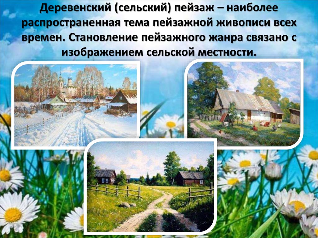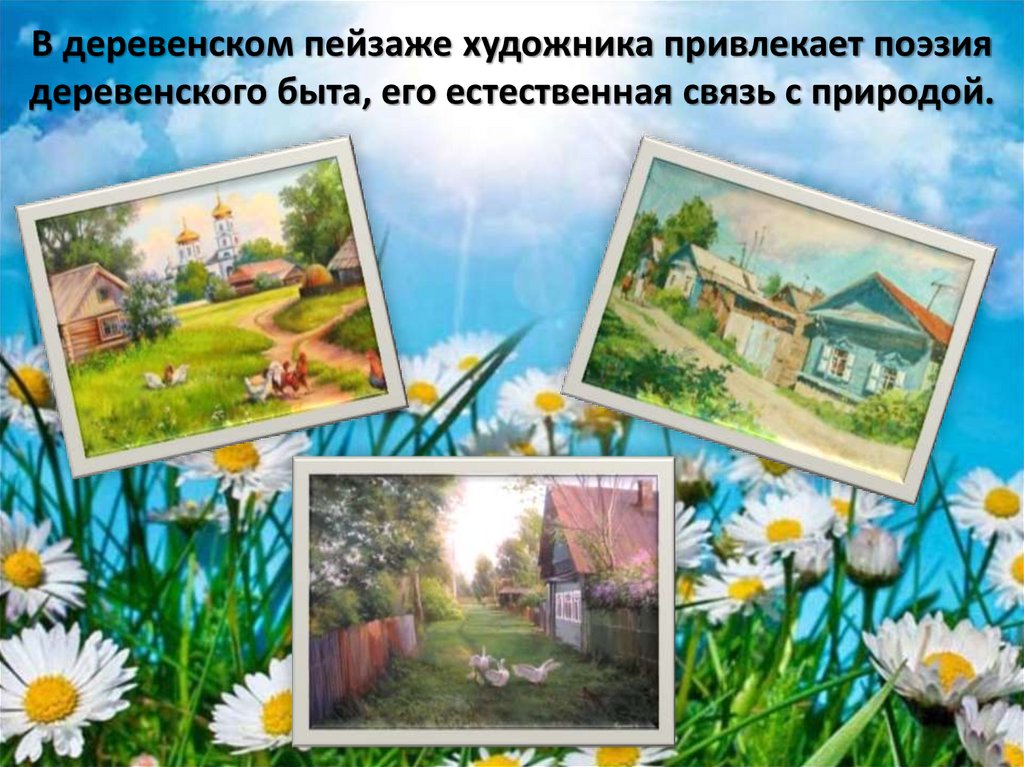художников разных стран.7. В деревенском пейзаже художника привлекает поэзия деревенского быта, его естественная связь с природой.