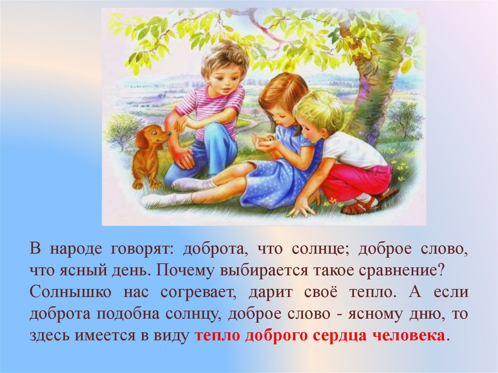 В народе говорят: доброта, что солнце; доброе слово,что ясный день. Почему выбирается такое сравнение?