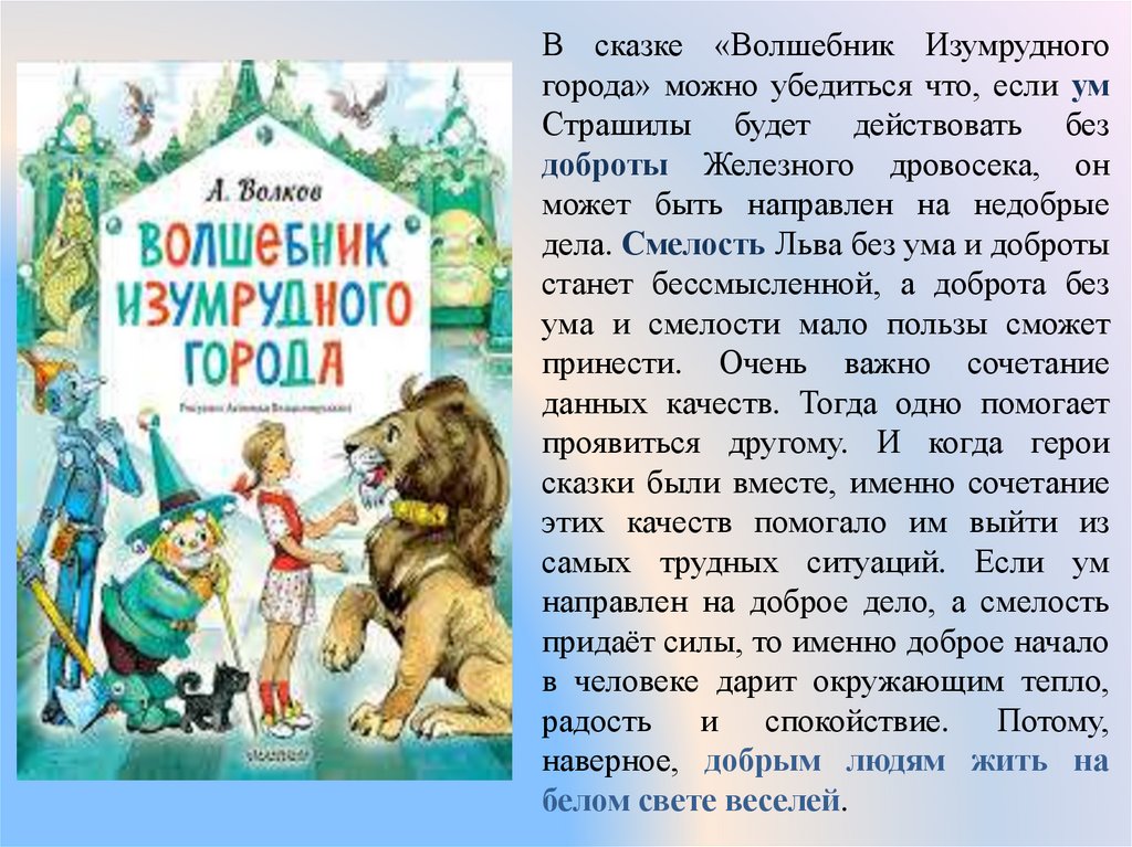 В сказке «Волшебник Изумрудногогорода» можно убедиться что, если ум
