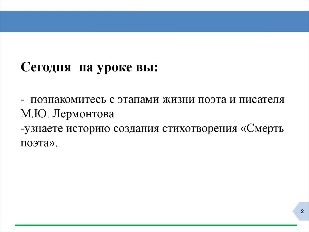 Сегодня на уроке вы:- познакомитесь с этапами жизни поэта и писателя