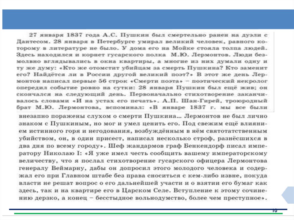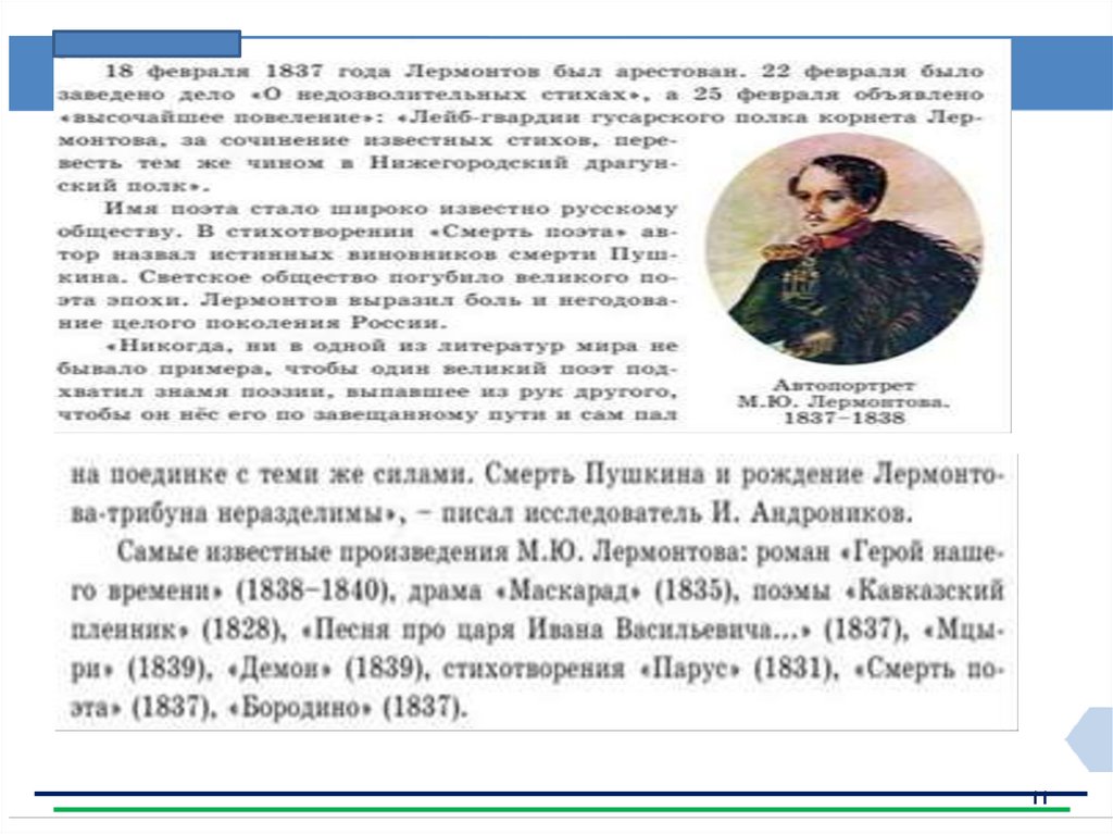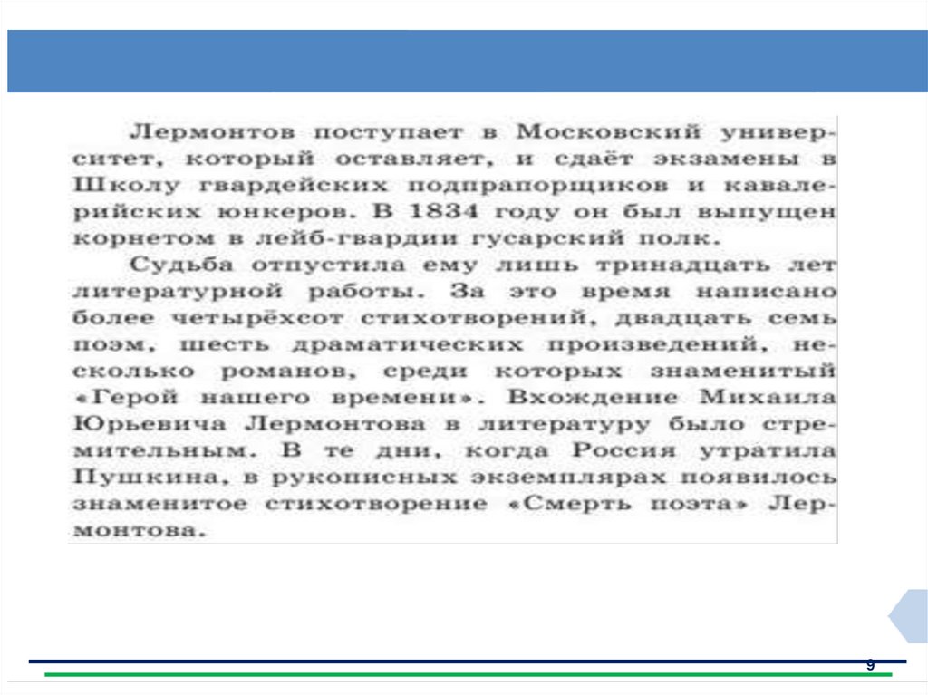 Тема: «Бессмертный и навсегда молодой» М.Ю. Лермонтов9 класс