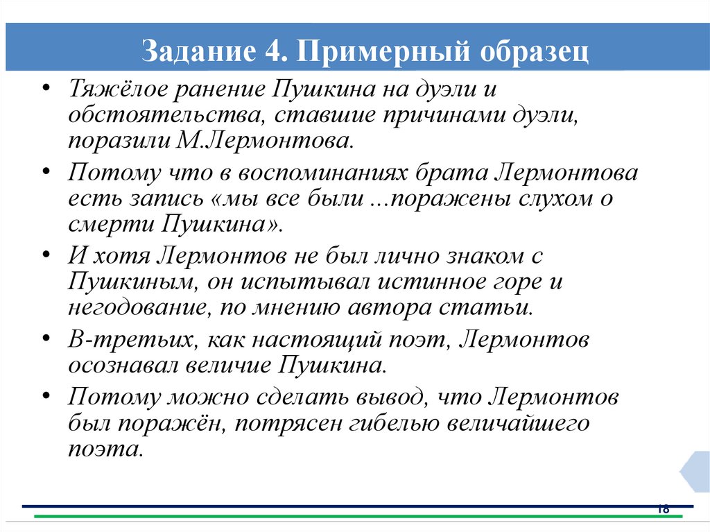Задание 4. Примерный образец• Тяжёлое ранение Пушкина на дуэли и