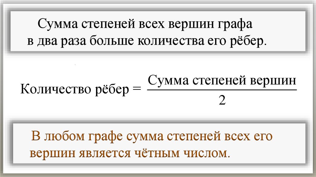 Сумма степеней всех вершин графав два раза больше количества его рёбер.