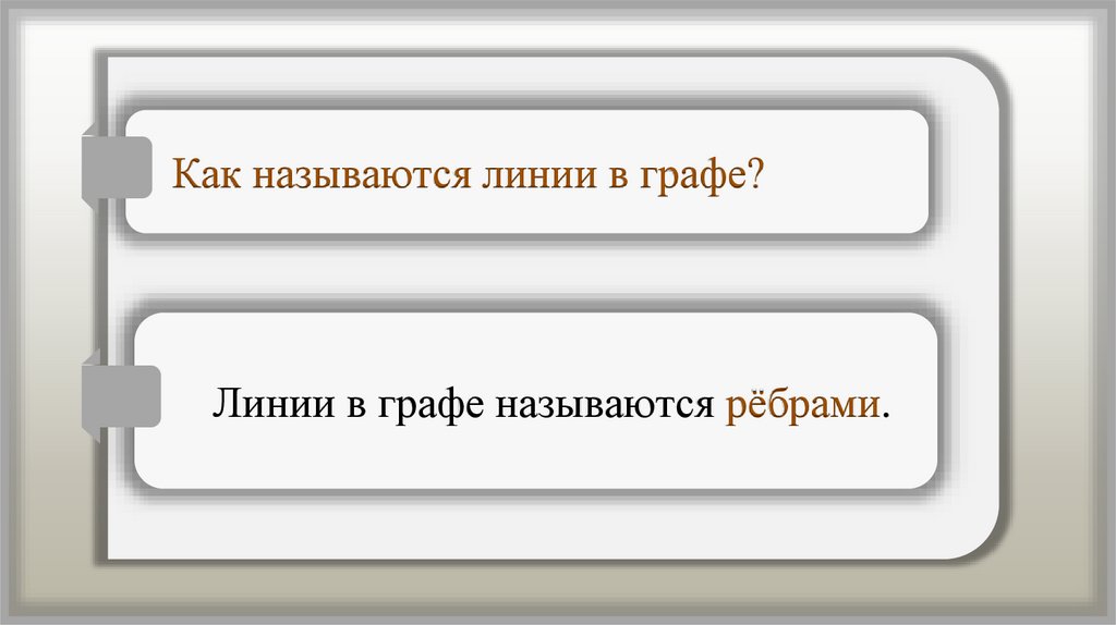 Как называются линии в графе?Линии в графе называются рёбрами.