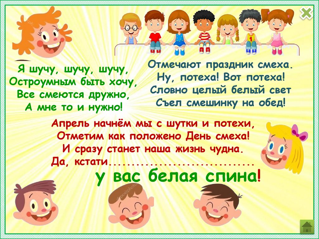 Отмечают праздник смеха.Я шучу, шучу, шучу,