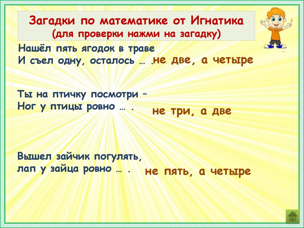 Загадки по математике от Игнатика(для проверки нажми на загадку)
