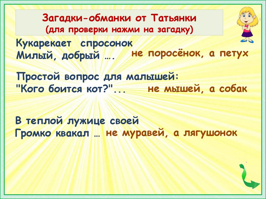 Загадки-обманки от Татьянки(для проверки нажми на загадку)