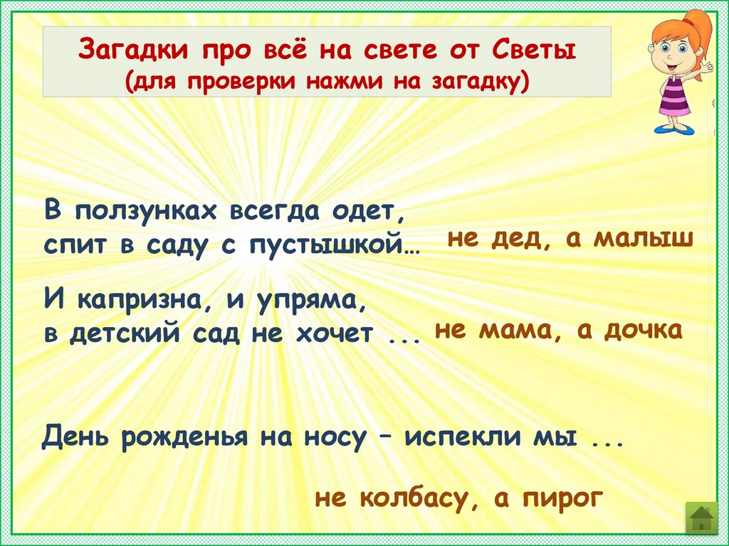 Загадки про всё на свете от Светы(для проверки нажми на загадку)