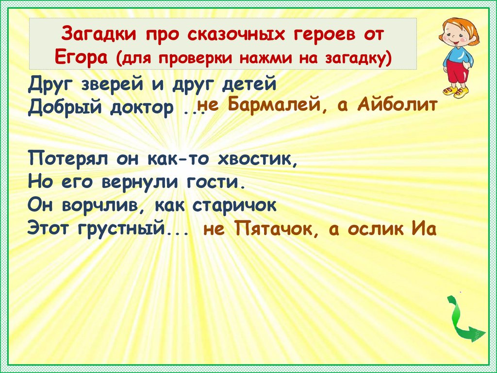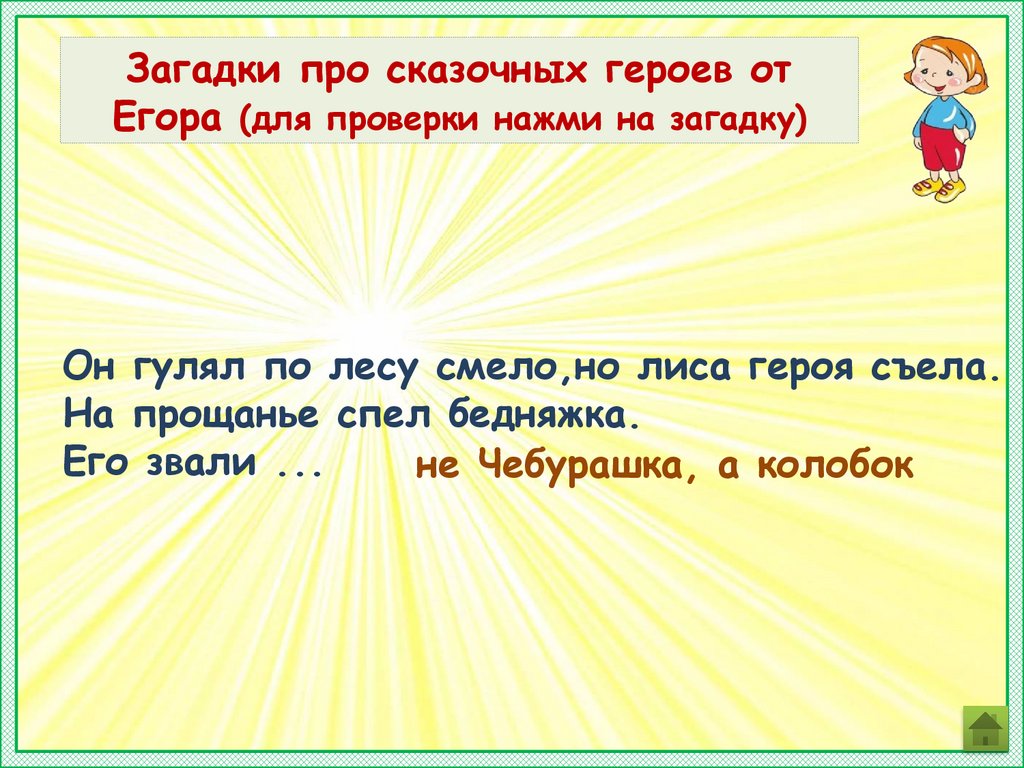 Загадки про сказочных героев отЕгора (для проверки нажми на загадку)