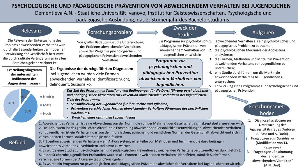PSYCHOLOGISCHE UND PÄDAGOGISCHE PRÄVENTION VON ABWEICHENDEM VERHALTEN BEI JUGENDLICHENDementieva A.N. - Staatliche Universität Ivanovo, Institut für Geisteswissenschaften, Psychologische und