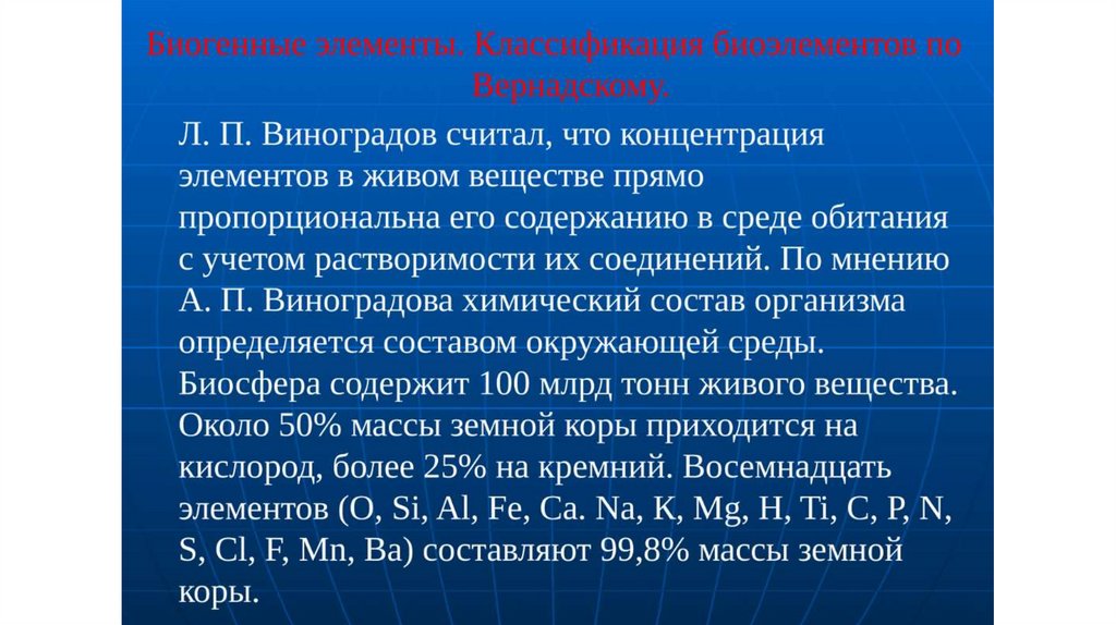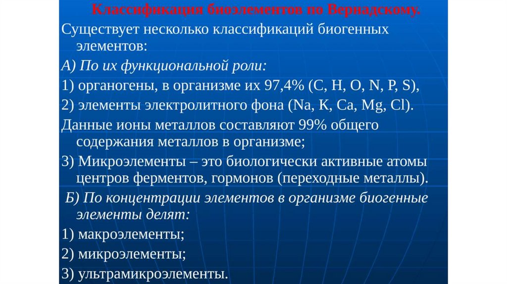 Биогенные элементы. Классификация биоэлементов по Вернадскому