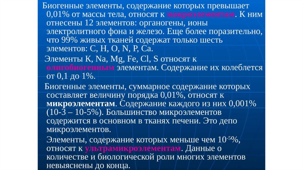 Биогенные элементы. Классификация. Топография биогенных элементов в организме человека