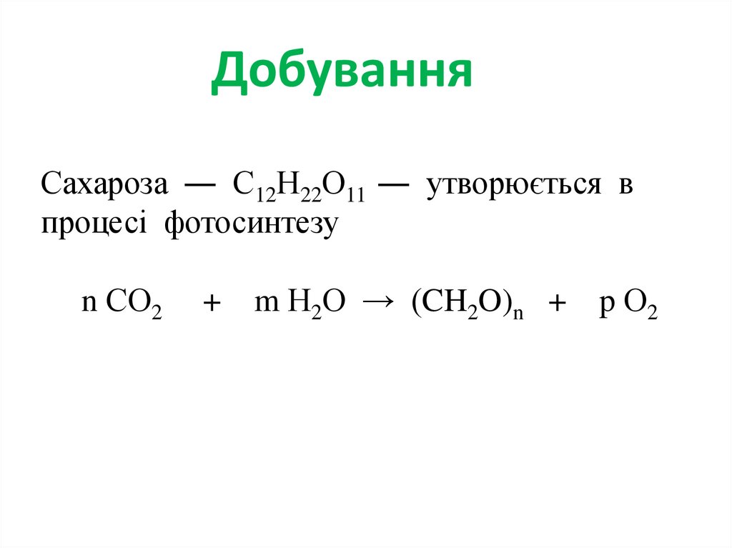 ДобуванняСахароза ― С12Н22О11 ― утворюється в