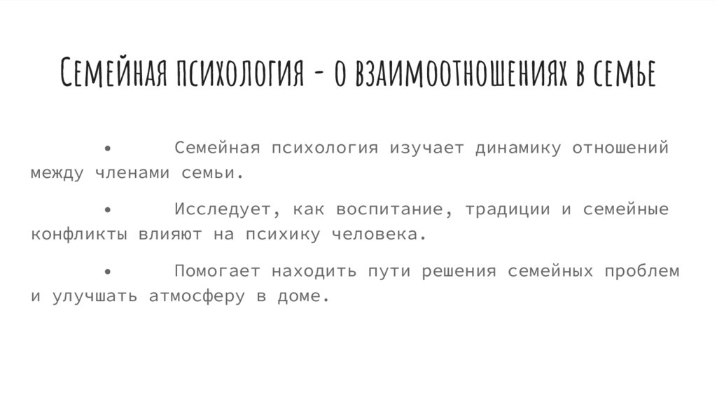 Семейная психология - о взаимоотношениях в семьеСемейная психология изучает динамику отношений