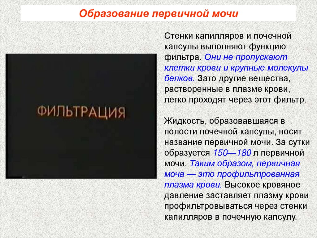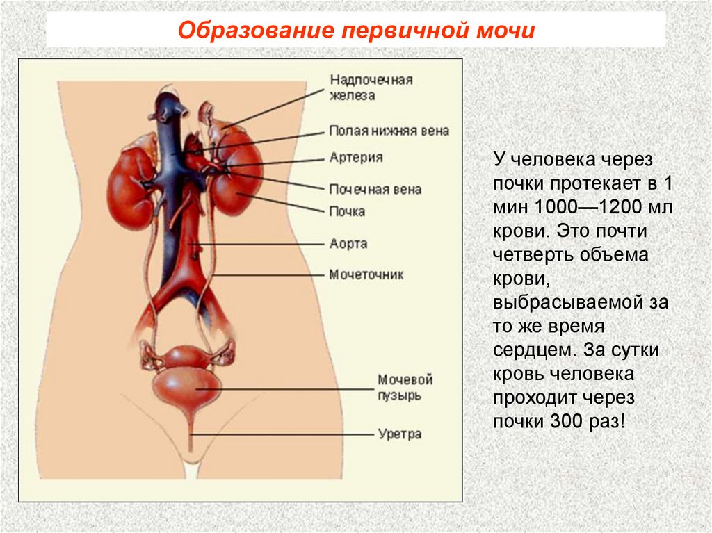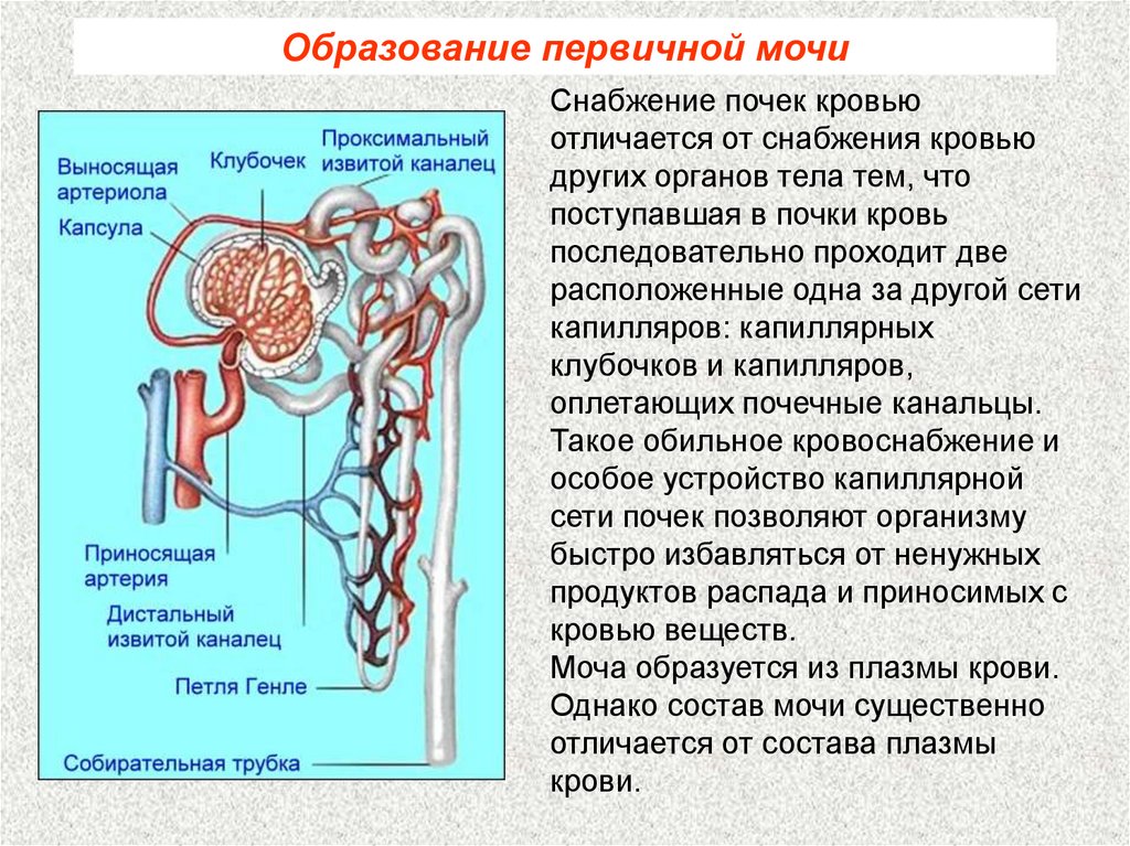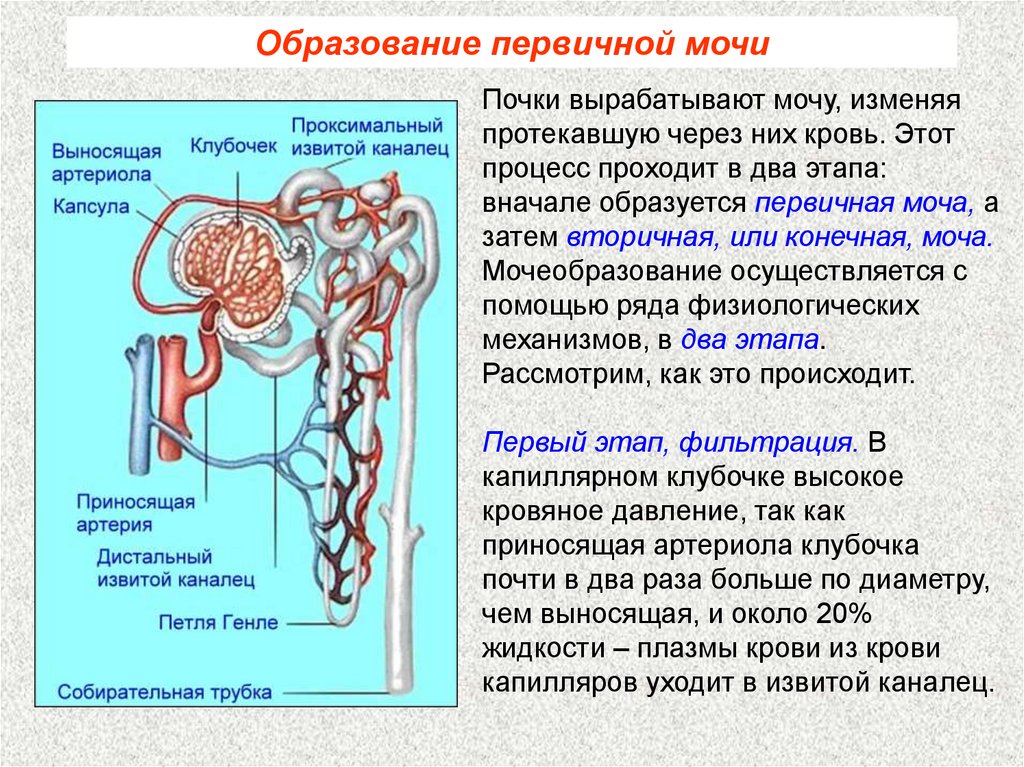 Образование первичной мочиПочки вырабатывают мочу, изменяя