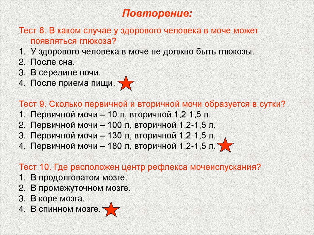 Повторение:Тест 8. В каком случае у здорового человека в моче может