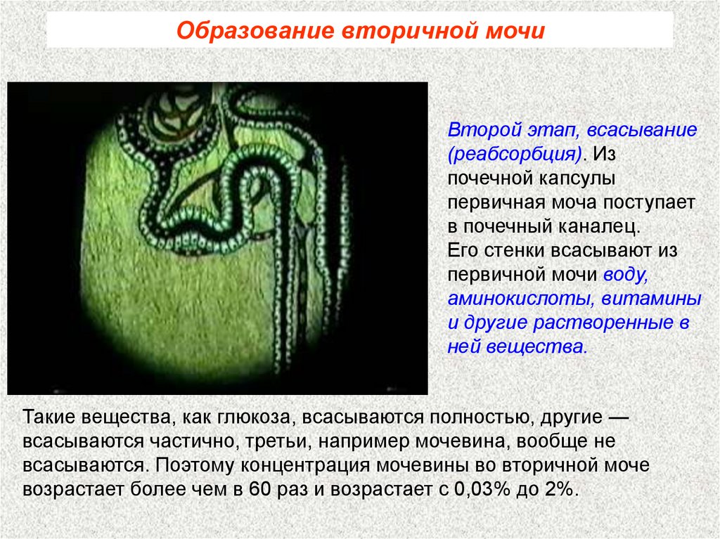 всасываются. Поэтому концентрация мочевины во вторичной моче