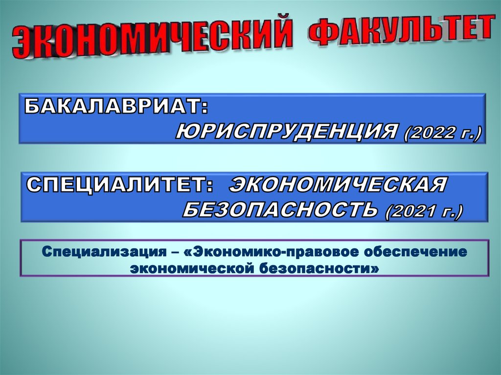 Специализация – «Экономико-правовое обеспечениеэкономической безопасности»