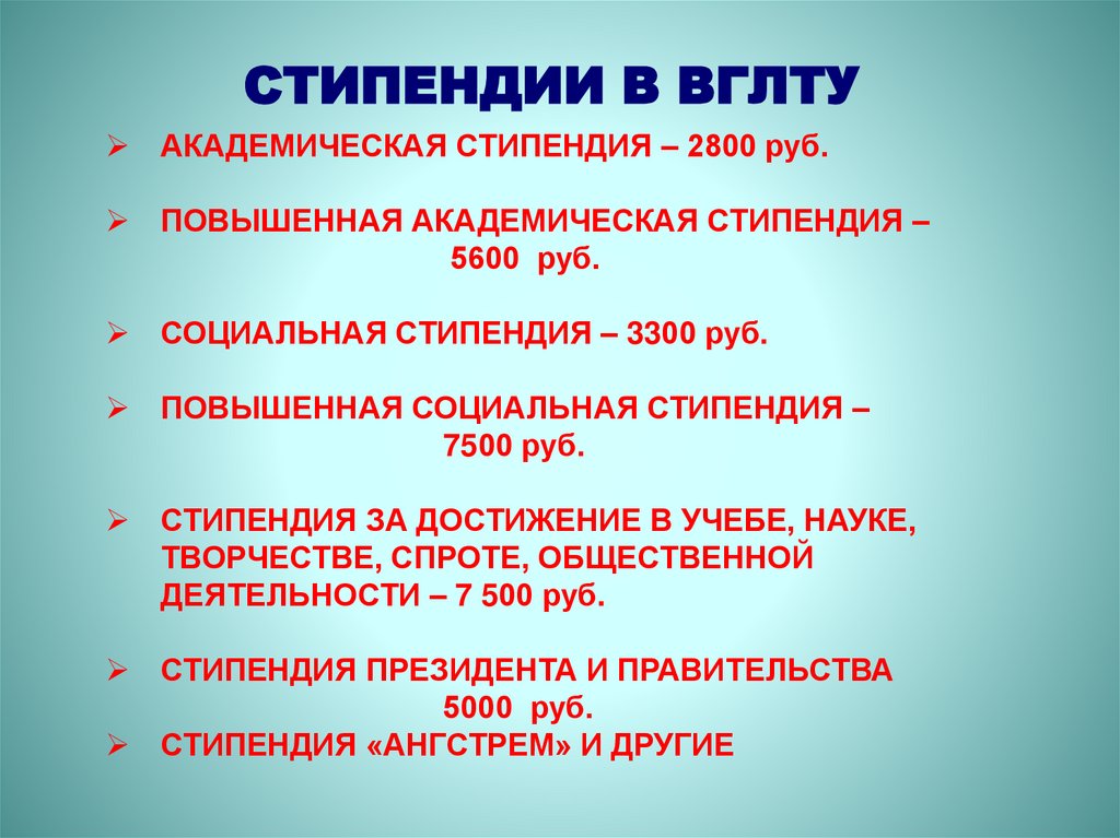 СТИПЕНДИИ В ВГЛТУАКАДЕМИЧЕСКАЯ СТИПЕНДИЯ – 2800 руб.