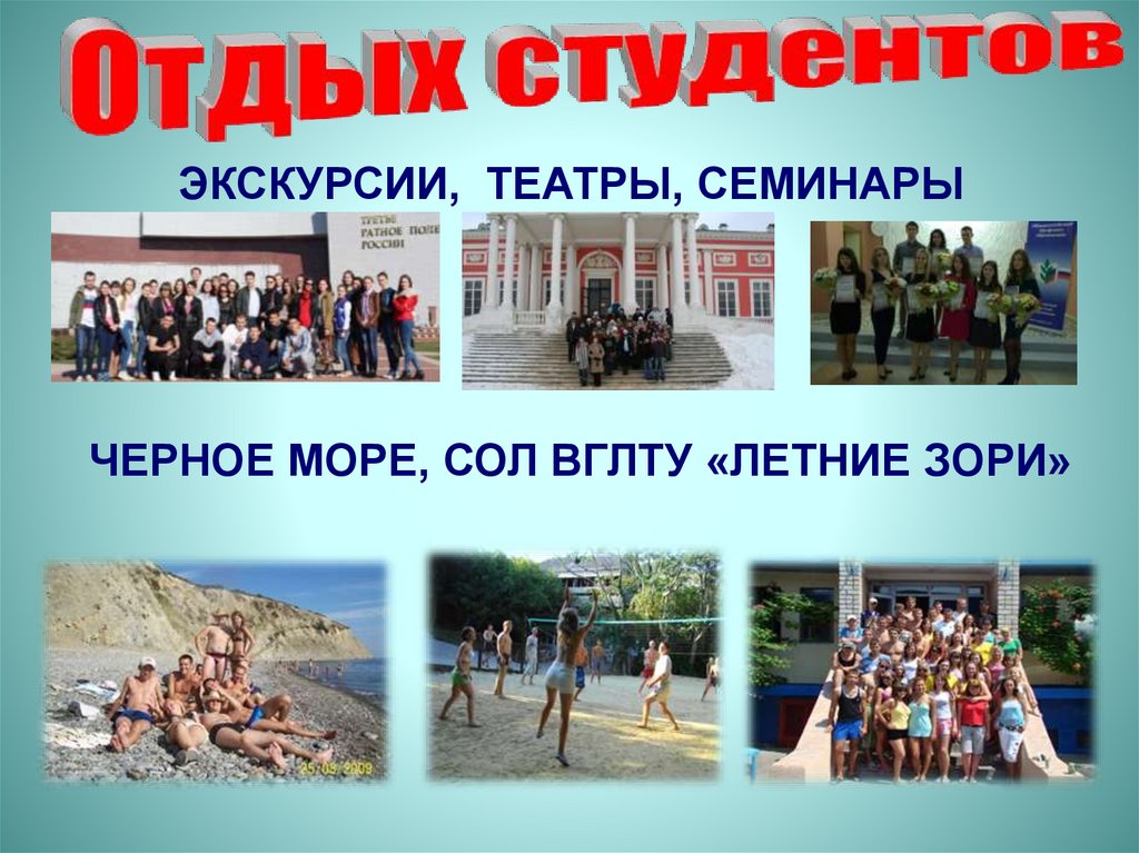 ЭКСКУРСИИ, ТЕАТРЫ, СЕМИНАРЫЧЕРНОЕ МОРЕ, СОЛ ВГЛТУ «ЛЕТНИЕ ЗОРИ»