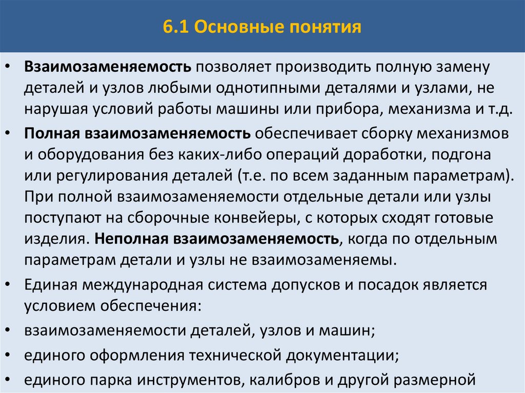 6.1 Основные понятия• Взаимозаменяемость позволяет производить полную замену