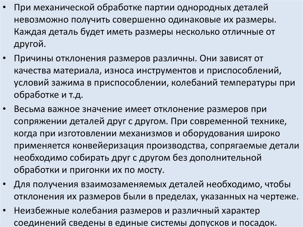 • Для получения взаимозаменяемых деталей необходимо, чтобы