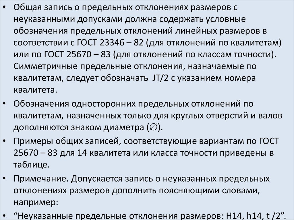 • “Неуказанные предельные отклонения размеров: Н14, h14, t /2”.