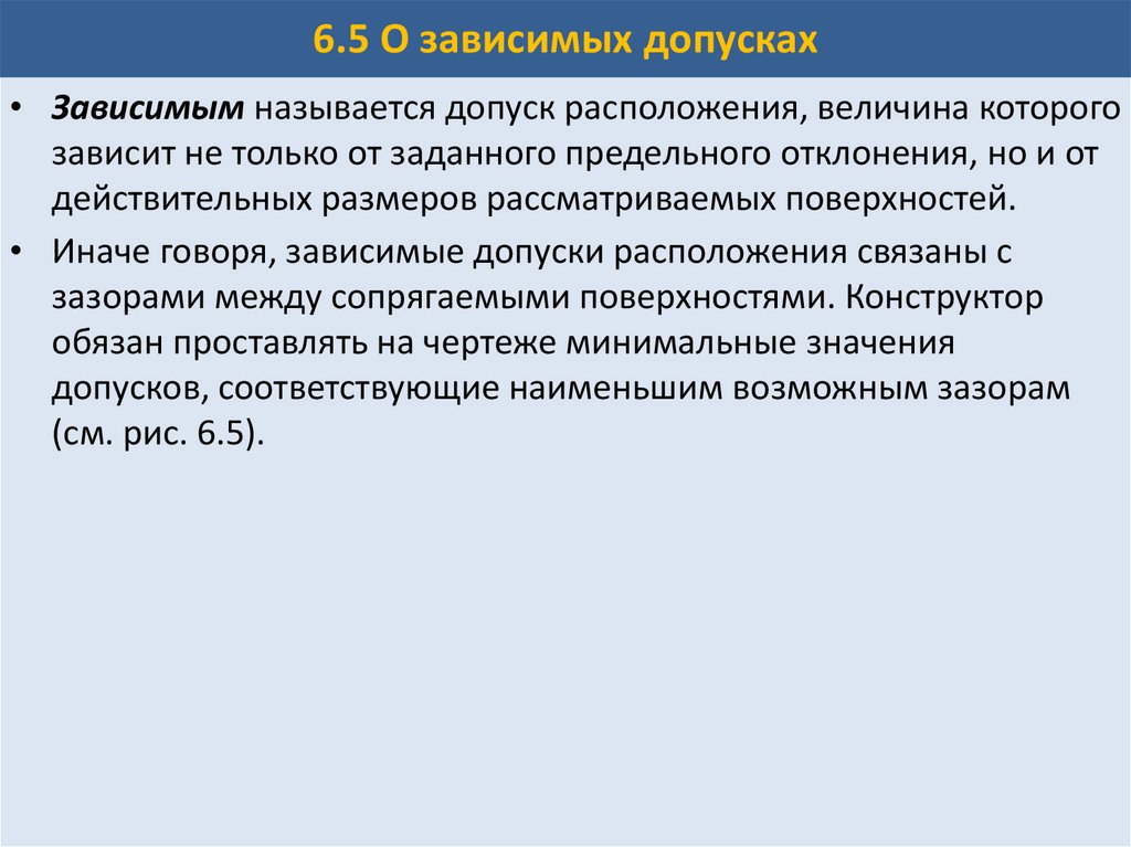 6.5 О зависимых допусках• Зависимым называется допуск расположения, величина которого