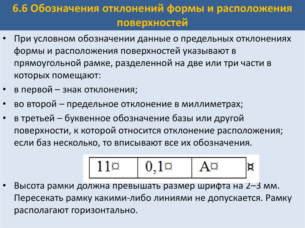 6.6 Обозначения отклонений формы и расположенияповерхностей