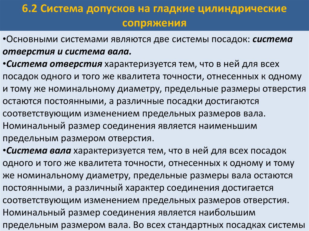6.2 Система допусков на гладкие цилиндрическиесопряжения
