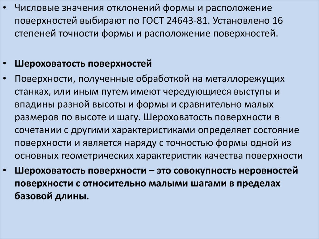 • Числовые значения отклонений формы и расположениеповерхностей выбирают по ГОСТ 24643-81. Установлено 16