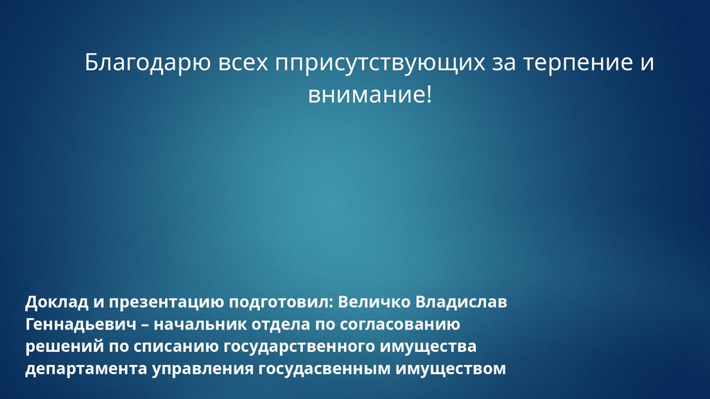 Благодарю всех пприсутствующих за терпение ивнимание!