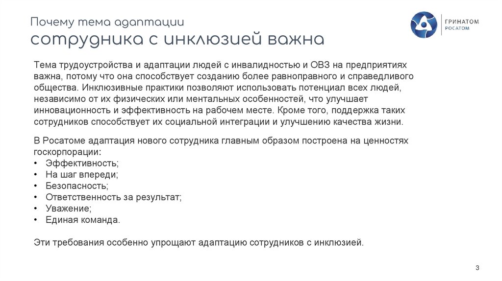 1. Адаптация сотрудника с инклюзией в АО “Гринатом”