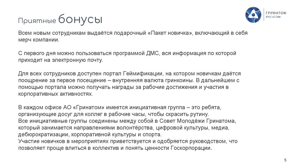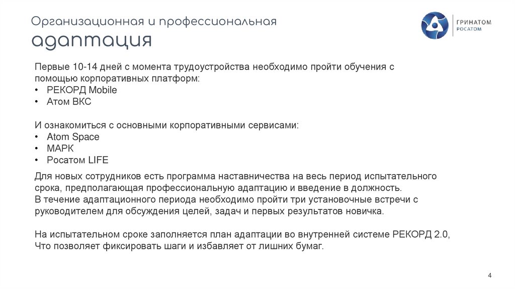 позволяет проще влиться в коллектив и понять ценности Госкорпорации.