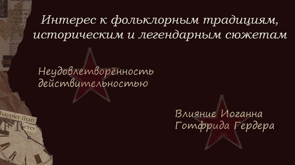 Интерес к фольклорным традициям,историческим и легендарным сюжетам