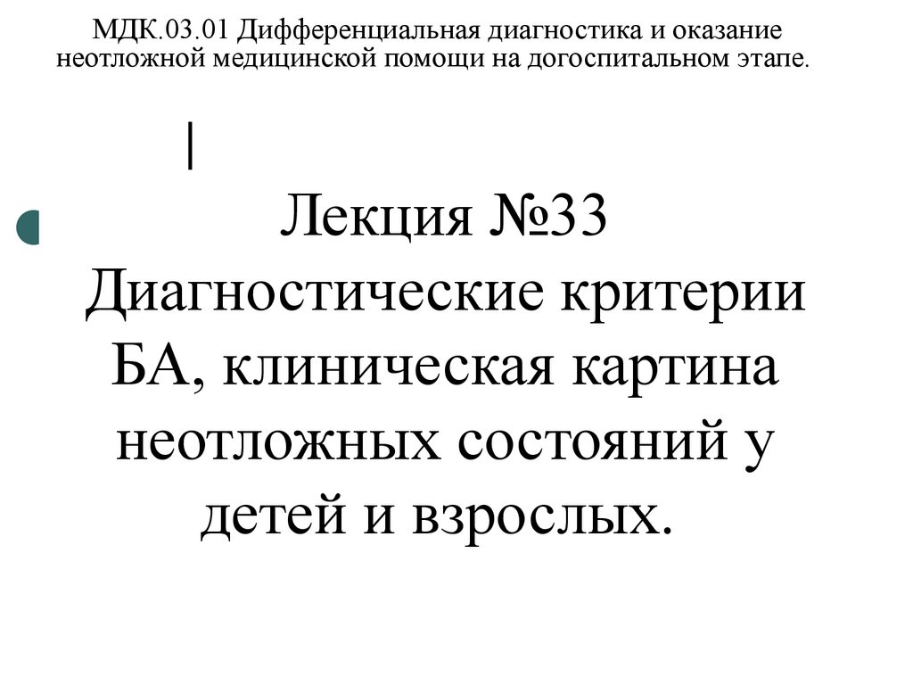 1. Лекция №33 Диагностические критерии БА, клиническая картина неотложных состояний у детей и взрослых.