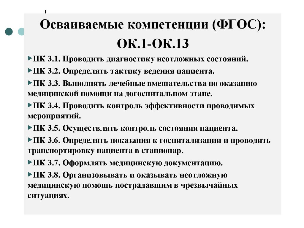 Осваиваемые компетенции (ФГОС):ОК.1-ОК.13